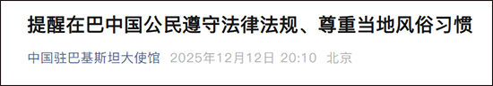 - 中国公民未经允许拍摄巴基斯坦女性激勉步骤事件,中使馆发文教导2025-12-15