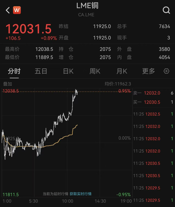 - 伦铜, 历史初度打破12000好意思元2025-12-25
