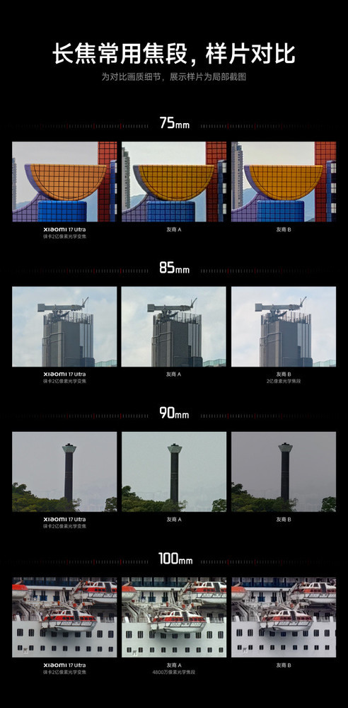 中枢参数方面,小米 17 Ultra 的长焦系统在 100mm 端已毕了 F3.0 以内的大光圈,调解低 ISO 时刻,夜景和弱光拍摄的纯洁度进步显耀。实测样张线路,即使在极暗环境下,毛发细节、开采纹理依旧明显可见,噪点逝世远超同时竞品。