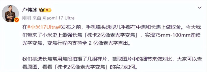 小米总裁官宣: 小米17 Ultra搭载小米史上最强长焦, 已毕无损画质